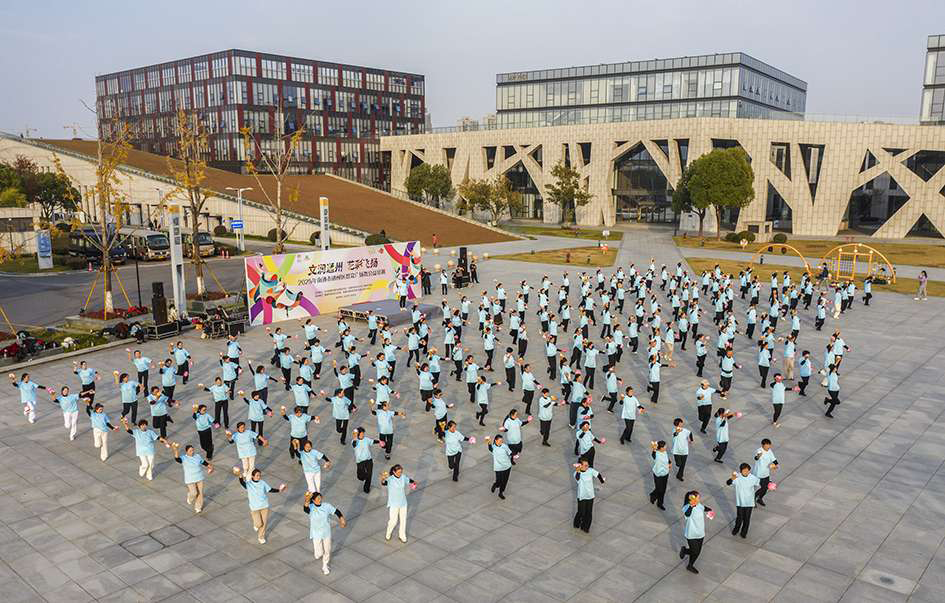 近日,区文化馆在文博中心广场开展了“文润通州 艺彩飞扬”2025年通州区群众广场舞公益培训,来自全区各镇街、群众文化团队的230余名广场舞爱好者齐聚一堂,在中国特殊艺术协会全国理事、北京市西城区舞蹈家协会副主席岳晓东带领下学习以省级非遗“荷花盘子舞”为蓝本创编的广场舞《映日荷花》