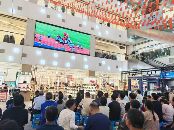 在通州万达广场中庭精心布置的“第二观赛现场”,人头攒动、座无虚席,浓厚的助威氛围扑面而来。市民陆先生作为南通队的忠实球迷,一直密切关注着球队的表现,此番更是专程赶来,在“第二现场”为队员呐喊助威,“今天南通队的小伙子们拼劲十足,状态不错。虽然后续比赛或许会更加焦灼,但我坚信,南通队的每一位队员都会全力以赴,取得最后的胜利!”